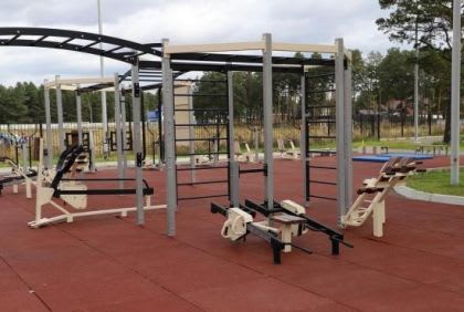 Площадка оборудована различными уличными тренажерами, шведской стенкой, мишенями, гимнастическими скамьями, разноуровневыми стационарными перекладинами, турниками и другими снарядами. В качестве покрытия использована специальная резиновая плитка.