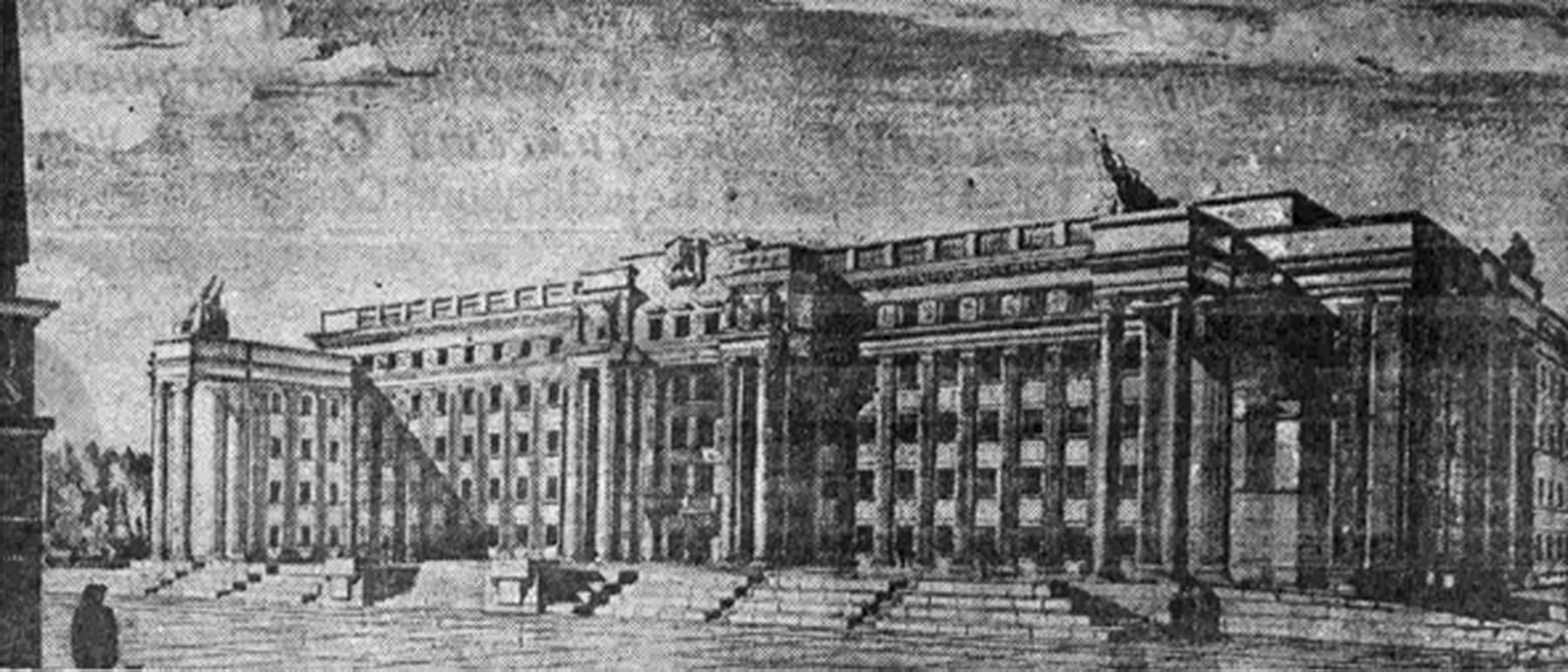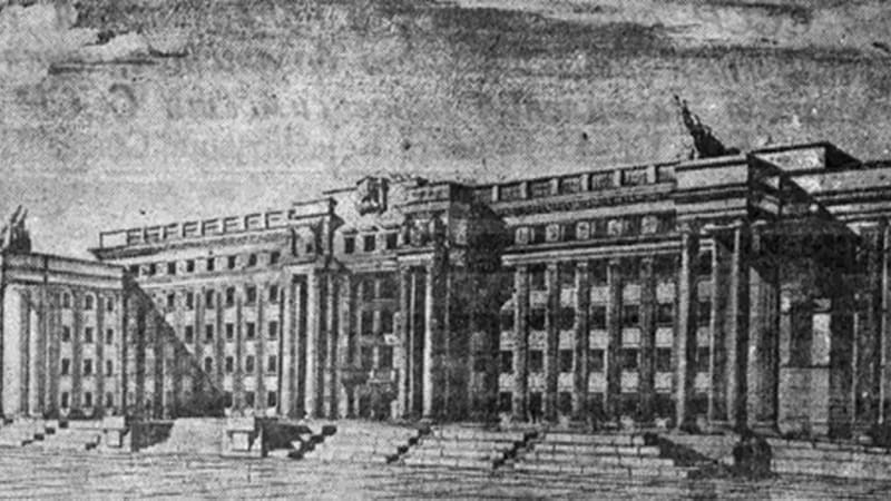 – На площади имени Кирова в областном центре трест «Иргорстрой» ведёт строительство Дома Советов. Это будет четырёх- и пятиэтажное здание объёмом 57 тысяч кубических метров. В нём разместятся областные организации – обком ВКП (б), облисполком, облплан, облкомхоз и другие. Уже сделан фундамент и на несколько метров возведены стены.