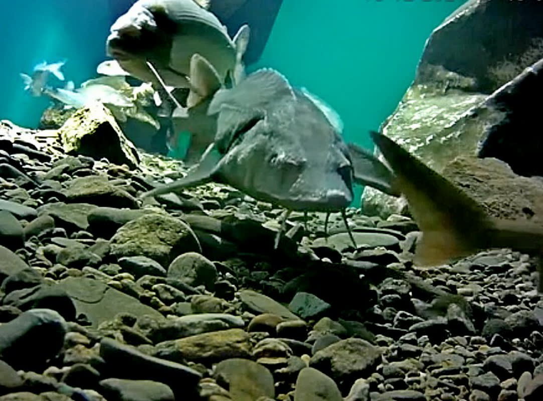 – Вот они! – Анна Нижегородцева, старший экскурсовод Байкальского музея Иркутского научного центра СО РАН, подводит меня к плотно заполненному жизнью аквариуму. В лучах света сверкают серебром, привлекая к себе внимание, сиги и гибриды сига с омулем – результаты научных опытов иркутских ихтиологов. Но в первую очередь взгляд притягивают несколько молодых, некрупных осетров-«подростков», судя по размерам, тенями скользящих над самым каменистым дном. Они хоть и не блестят, зато внешне выглядят фантастически несовременно. Доисторически. Эволюционные современники динозавров, «живые ископаемые», они будто в панцирях: на спине и боках ряды ромбовидных, похожих на короткие и крепкие шипы, костных пластинок, которые в народе (да и в науке тоже) называют жучками (ударение на «у»). У осетровых нет костного скелета, как у остальных, у современных рыб. Даже череп у них состоит из хрящевой основы. А своеобразный «панцирь» из костных жучек на поверхности тела вместо привычной рыбьей чешуи – это и дополнительная жёсткость, и защита.