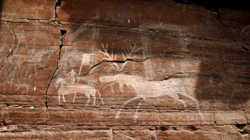 Некоторые рисунки наносились в ритуальных целях: считалось, например, что изображения животных приносят удачу на охоте, а солярные символы обеспечивают защиту. Среди прочих петроглифов на скале можно увидеть изображение всадника со знаменем – теперь так выглядит современный герб Республики Саха (Якутия). Здесь же можно найти и надписи солдат, которые перед отправкой на фронт во время Великой Отечественной войны оставляли память о себе.