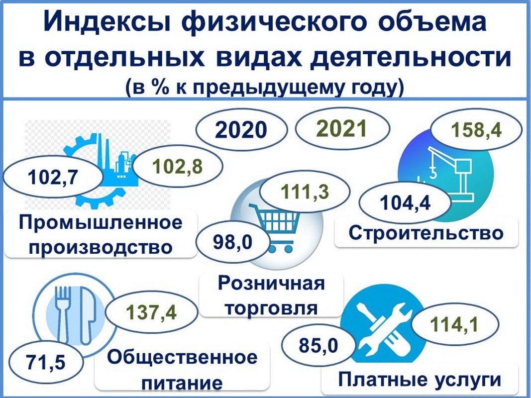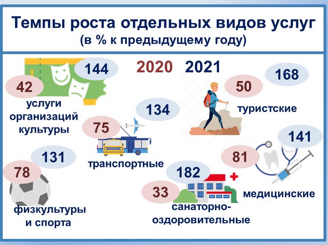 В среднем каждый житель области за год приобрёл товаров на 199,3 тыс. рублей, в предприятиях общепита потратил 7,8 тысячи, за полученные услуги заплатил 50,5 тыс. рублей. Эти сферы деятельности обеспечили рост к предыдущему году соответственно на 11%, 37% и 14%. Эти очень неплохие темпы сложились после обвала в 2020-м, когда из-за жёстких огриничительных мер потребительский рынок нёс потери, особенно ощутимые на начальном этапе пандемии коронавируса. В торговле и общепите удалось не только компенсировать былые потери, но и превзойти доковидный уровень. В сфере сервиса прежний объём почти восстановлен. Вначале наметились точки роста, а в целом за 2021 год зафиксирован рост почти по всем видам услуг. Максимальный рост отмечается по услугам, наиболее пострадавшим от антиковидных ограничений.