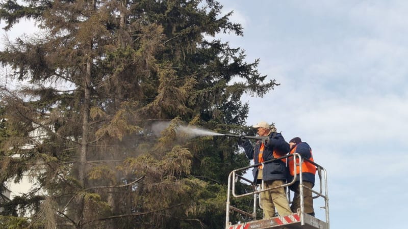 К майским праздникам в Иркутске помоют кроны хвойных деревьев