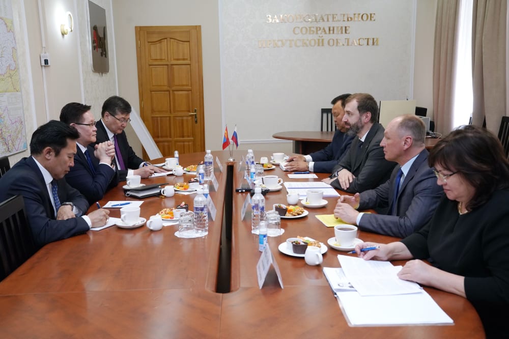 Развитие торгово-экономического сотрудничества стало главной темой на встрече депутатов Законодательного Собрания Иркутской области с членами делегации Монголии. В переговорах приняли участие спикер областного парламента Александр Ведерников, вице-спикер Кузьма Алдаров, председатель комитета по законодательству о природопользовании, экологии и сельском хозяйстве Роман Габов, а также Чрезвычайный и Полномочный посол Монголии в Российской Федерации Улзийсайханы Энхтувшин, генеральный консул Монголии в Иркутске Жигмэд Энхжаргал, представитель МИД России в Иркутске Людмила Курбатова.