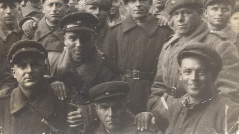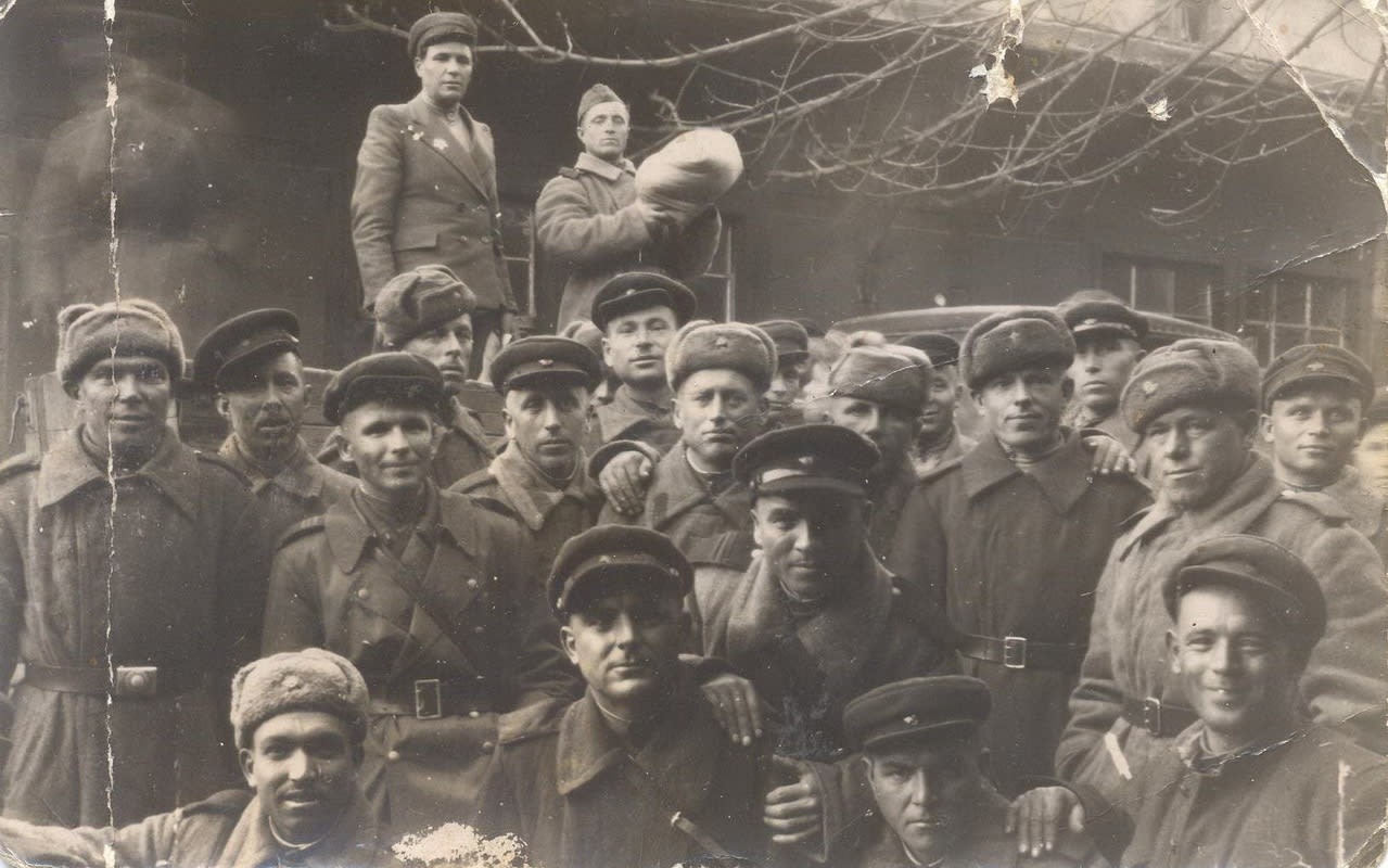 Ещё дед был награждён орденом Отечественной войны, у него было много военных и трудовых наград. У деда сохранилась одна фотография военных лет, на обратной стороне подписано: «1945 год». Я предполагаю, что на этой фотографии бойцы из госпиталя, поскольку дед ранен был 15 апреля 1945 года при освобождении Кёнигсберга и все бойцы в разном обмундировании. Им командиры вручают подарки, наверное, в связи с Днём Победы.
