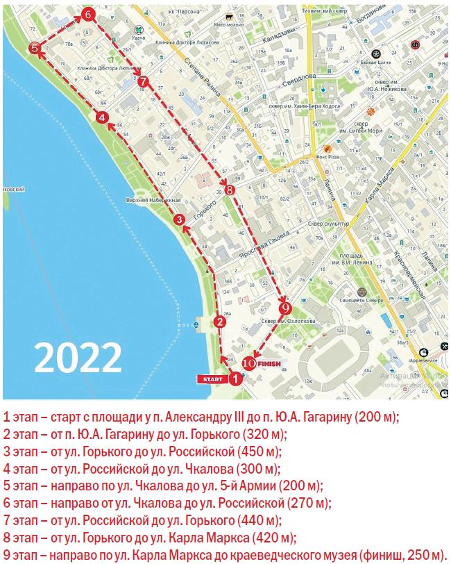 Эстафета проводится по улицам города Иркутска. Старт эстафеты – 22 мая 2022 г. с площади у памятника Александру III.