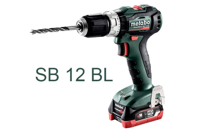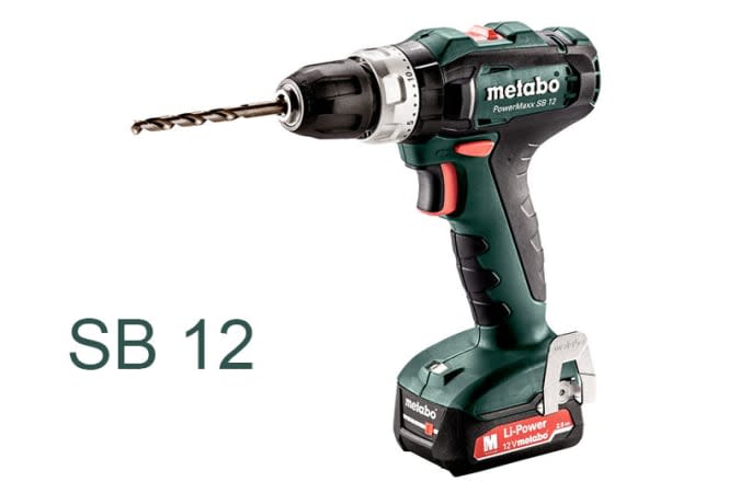 Дрель-шуруповерт SB 12 от Metabo весит 1 кг, обладает жёстким крутящим моментом 40 Нм (мягкий крутящий момент 17 Нм) и представляет собой базовую модель инструмента 12V. Дрель оснащена коллекторным (щёточным) двигателем и имеет 20 позиций установки крутящего момента. Она хорошо работает с компактным аккумулятором 2,0 Ач (входит в комплект). Весит всего 1,1 кг.