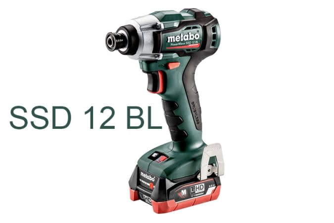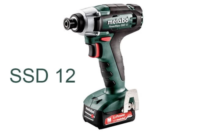Хотя на сайте компании аккумуляторный ударный гайковёрт Metabo SSD 12 обозначен именно так, на самом деле это шуруповёрт. По какой-то причине компания отказывается называть этот инструмент так. Метабо SSD 12 имеет коллекторный двигатель и максимальный крутящий момент 115 Нм. Вес всего 1,1 кг с подключенным аккумуляторным блоком.