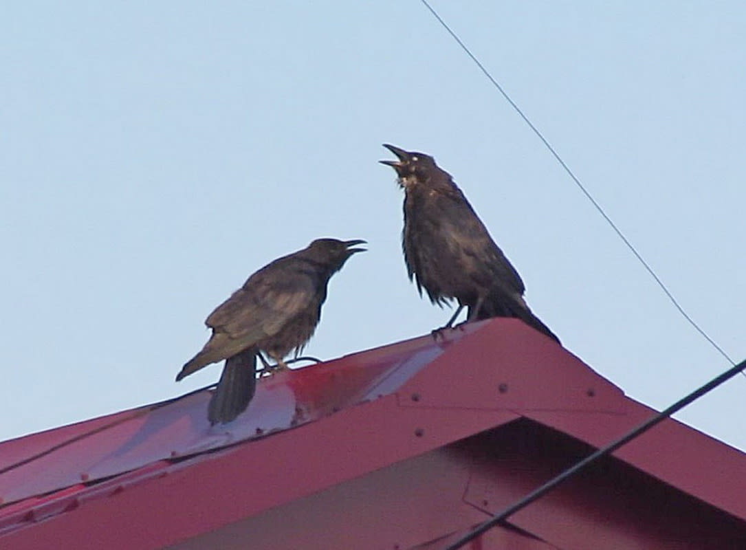 Ворона-самка не сводила с мужа восторженных глаз. Иногда от удовольствия привставая, топорща пёрышки, чуть разводя в стороны чёрные крылья и вновь прижимая их к телу. Муж, не прекращая каркать, отвечал взаимностью. Тоже топорщил перья, шевелил крыльями. Но на узком коньке, сидя рядом в одну сторону хвостами, смотреть друг на друга было не очень удобно. И самка в какой-то момент начала неловко, суетливо переступать ногами по скользкому металлу. Самец подождал, повернулся к супруге вполоборота и вновь запел что-то торжественное. Это по моим, по человеческим ощущениям – торжественное. А по вороньим – вполне могло оказаться лирикой. И так новая песня зацепила самку, так её разобрало, что не сдержалась она, начала подпевать, повторяя движения партнёра. Так и пели они дуэтом, топорща друг перед другом пёрышки, шевеля крыльями и бесконечно кланяясь друг другу при завершении каждой вороньей музыкальной фразы.