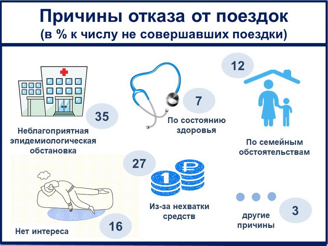 А что послужило антимотивацией к совершению поездок? Главная причина сидеть на месте – пандемия коронавируса. Многих заставляет остаться дома недостаток средств, и вполне естественно, что финансовый голод сильнее всего сдерживает жажду путешествий лиц из группы малообеспеченных.