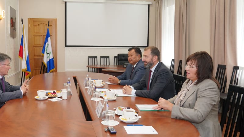 В Законодательном Собрании Иркутской области прошла встреча председателя областного парламента Александра Ведерникова с Чрезвычайным и Полномочным послом России в Монголии Искандером Азизовым. Стороны обсудили межпарламентское взаимодействие России и Монголии. Во встрече принял участие также вице-спикер ЗакСобрания Иркутской области Кузьма Алдаров и представитель МИД России в Иркутске Людмила Курбатова.