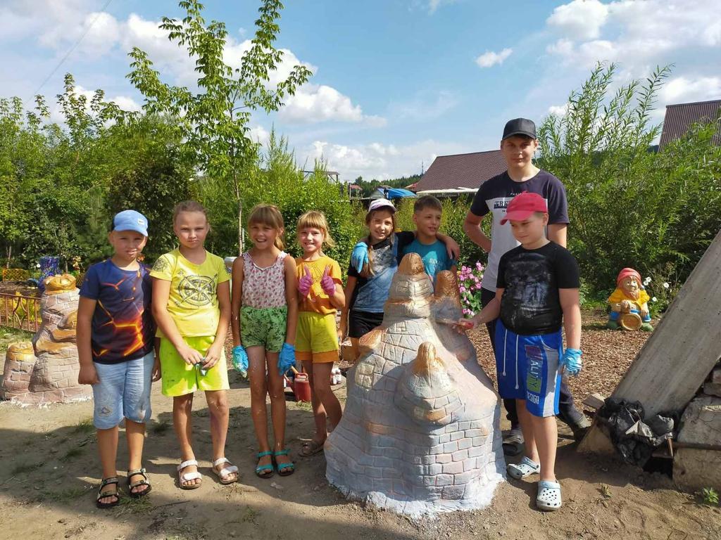 8 августа стартовало обучение по росписи малых архитектурных форм. Дети и подростки подготовили к покраске и раскрасили вазоны для цветов, фигурки животных и сказочных жителей.