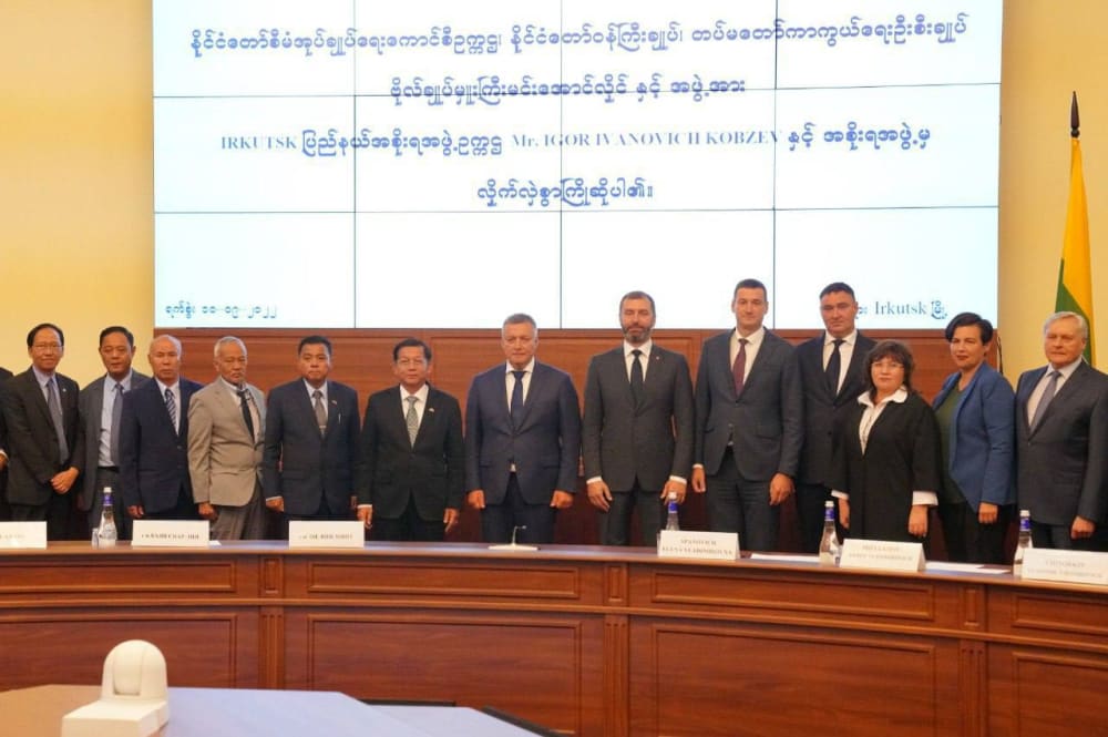 Делегация из Мьянмы во главе с председателем Государственного административного совета, премьер-министром страны Мин Аун Хлайном находится в Иркутской области с рабочим визитом. Губернатор Иркутской области Игорь Кобзев, председатель Законодательного Собрания Иркутской области Александр Ведерников, председатель правительства региона Константин Зайцев, мэр Иркутска Руслан Болотов, руководитель территориального органа МИД Людмила Курбатова, а также члены правительства региона приняли участие в совещании с представителями делегации.
