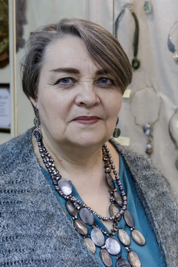 – С ребятишками и взрослыми мы лепим из глины, занимаемся валянием из шерсти, рисуем, – рассказывает мастер. – Мне самой все эти виды творчества нравятся. Особая любовь – изготовление авторских украшений. Вот и выставку из них подготовили с коллегами. Это не ювелирное дело, это скорее украшения, посвящённые какой-то определённой тематике. Люблю создавать этнические или природные образы. Всё зависит от материала, который в руки попадёт и вдохновит. Это могут быть самоцветы, раковины, кожа, мех, перламутр, металлы разные. Я не использую золото и серебро, так как мои изделия достаточно крупные и в этих металлах будут громоздко смотреться. Зато бронза, медь и нейзильбер (сплав меди, никеля и цинка. – Прим. ред.) – это мои любимые материалы. С ними очень удобно работать, они пластичны, можно делать разную фактуру. Они надёжно обрамляют, например, камни. Они тоже в моих изделиях не мелкие, поэтому нужно, чтобы крепко держались.