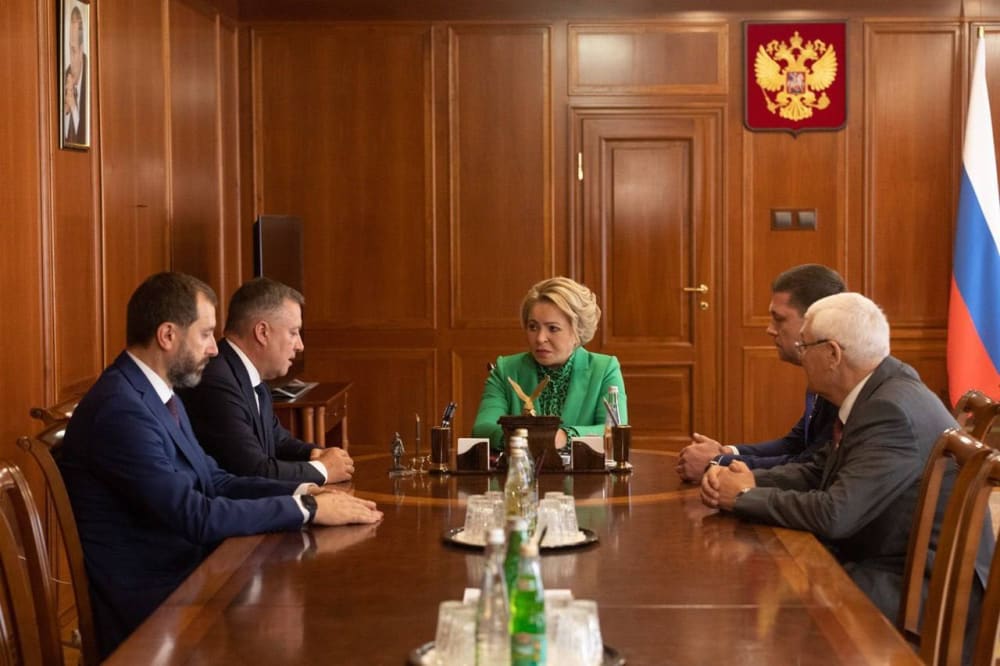 Состоялась рабочая встреча председателя СФ Валентины Матвиенко с губернатором Игорем Кобзевым и спикером ЗС Александром Ведерниковым