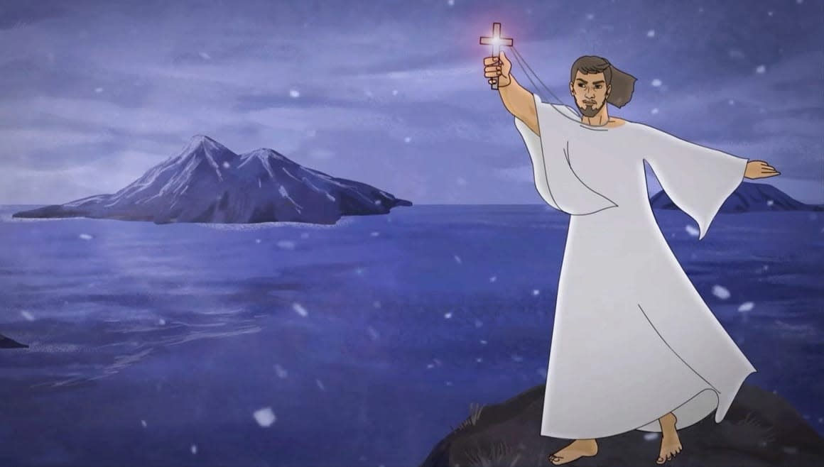 В мультфильме чувствуются радость и мечта, которые наверняка вели молодого священника, когда он принял решение ехать к неизведанным островам. «Нам хотелось, чтобы фильм был динамичным, интересным и его могли смотреть не только воцерковлённые дети, а вообще все дети, – говорит Наталья Гончаренко. – Сознательно мы ушли от темы: «Вот, детки, посмотрите, какой великий человек был! Срочно учитесь у него». Хотелось показать живого человека, у которого, как у каждого из нас, есть и сомнения, и страх. И даже немножечко гордыни. Он ведь у нас молодой, юный. Помните кадр, когда в мультфильме появляется чудище, а священник убивает его, подняв крест? Сила его ведёт, он ощущает, что может победить, и гордится этим. Вот это мы и хотели показать – простого человека, не святого».