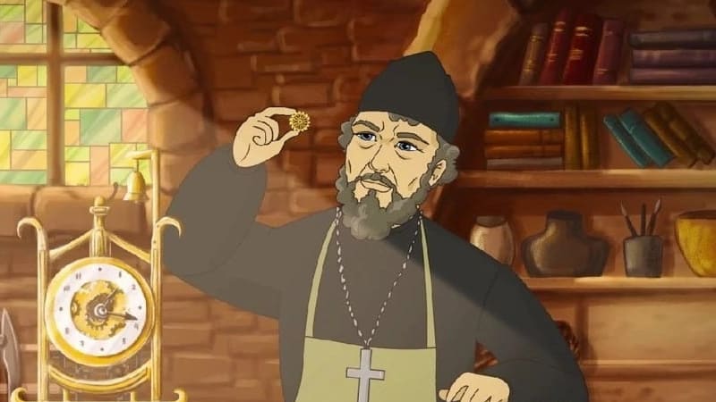 Это было что-то сродни работе антрополога Михаила Герасимова, когда он восстанавливал лицо по черепу. А наши художники шли назад во времени. Сначала был создан как раз последний кадр мультфильма, где святитель Иннокентий появляется в облачении митрополита. Шаг за шагом художники делали его молодым. Сначала убирали седую бороду, потом стирали морщинки и делали лицо всё моложе и моложе. Это была почти научная реконструкция облика святителя. И мне кажется, у нас получилось».