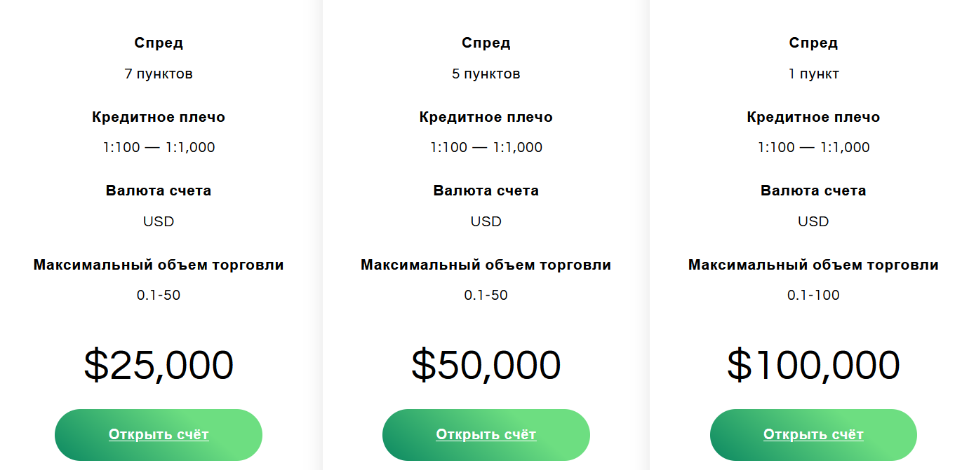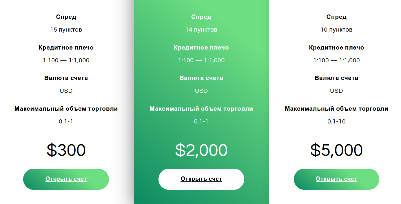 - Спреды: фиксированные, точный размер зависит от выбранного актива.