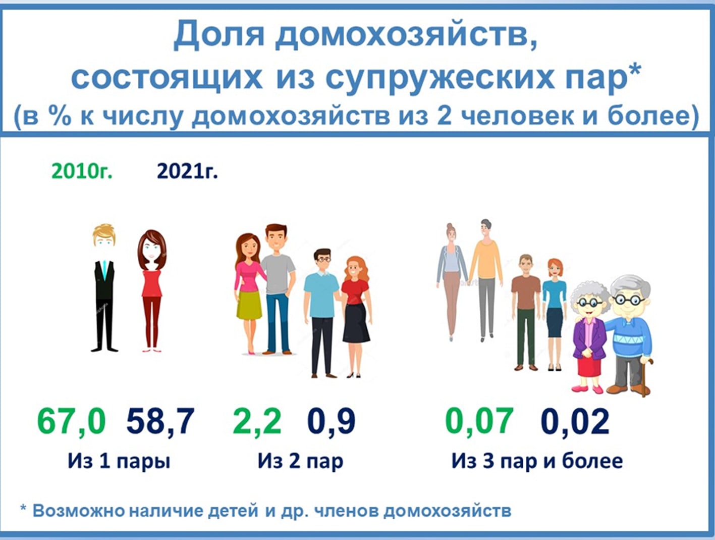 В числе домохозяйств стало меньше состоящих из супружеских пар, в том числе представляющих разные поколения.