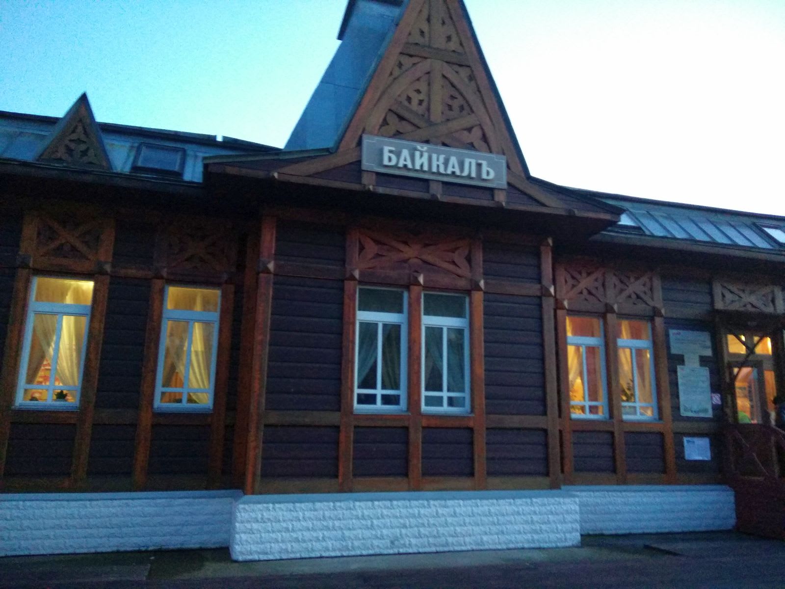 «Станция Байкал и тесно примыкающий к ней порт с таким же названием зимой производят тягостное впечатление. Приткнувшиеся к берегу и закованные льдом суда во главе с «Комсомольцем» и погасившим свои котлы ледоколом «Ангара», холодная коробка с заколоченными окнами западного блок-поста, пустующий железнодорожный вокзал с массивными круглыми часами, показывающими московское время, запорошенные снегом станционные пути…