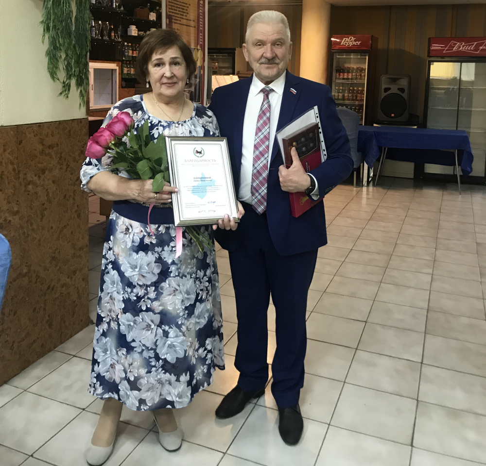 Георгий Любенков вручил Благодарность председателя ЗС братчанке Лидии Ознобихиной