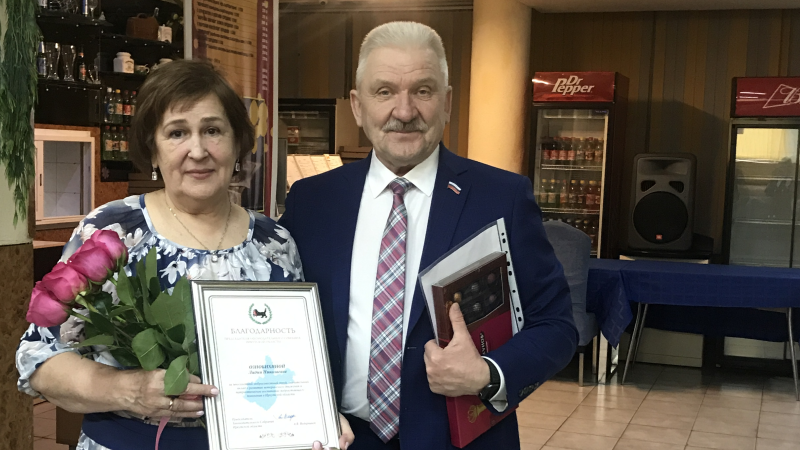 Благодарность председателя Законодательного Собрания Иркутской области за многолетний добросовестный труд вручил депутат областного парламента Георгий Любенков жительнице Братска Лидии Ознобихиной, которая более 40 лет отработала в системе дошкольного образования. «На таких женщинах – матерях, бабушках, прабабушках – стойких, надежных, трудолюбивых, держится в нашем мире очень многое», – отметил парламентарий.
