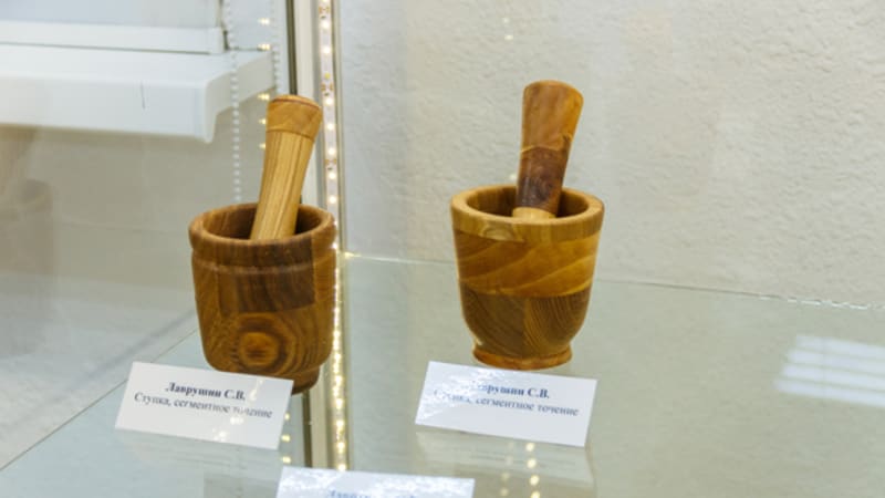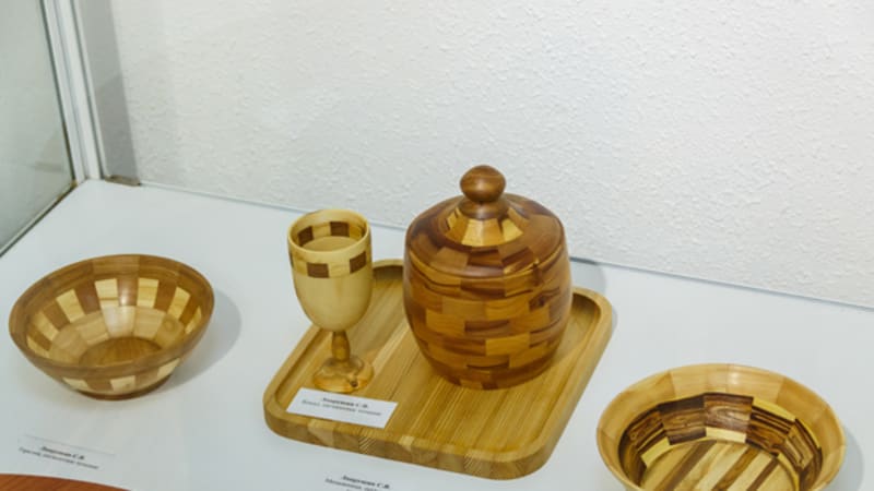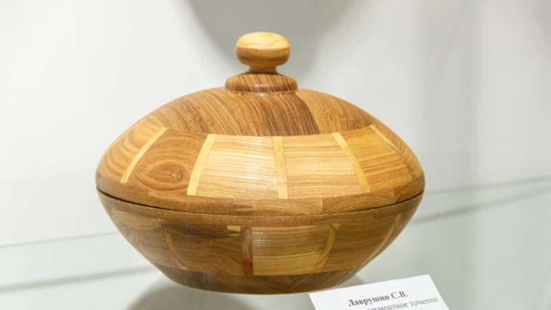 Деревянные изделия – менажницы, колокола, кувшины, подсвечники и даже самовар – привёз на выставку в Иркутский городской выставочный центр имени Рогаля мастер из Саянска Станислав Лаврушин. Он работает в технике сегментного точения. Что это за способ изготовления предметов, какую древесину использует мастер – об этом читайте в нашем материале.