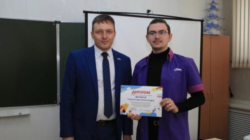 Артём Лобков наградил усть-илимских старшеклассников, победивших в конкурсе рисунка