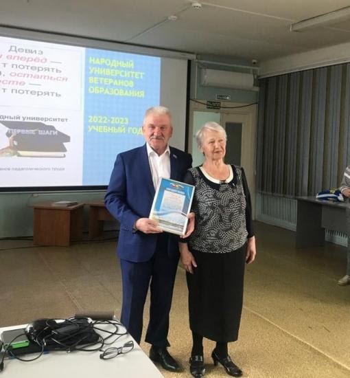 На заключительном занятии другого многолетнего просветительского проекта — «Народного университета ветеранов педагогического труда» депутат, являющийся его попечителем, высоко оценил качество знаний, полученных студентами. В «университете» учатся вышедшие на пенсию профессиональные педагоги — учителя и директора школ, воспитатели и заведующие детсадов. Лекции им читают их работающие коллеги из образовательных организаций Братска. Среди них — преподаватели Братского государственного университета, Братского педагогического колледжа, искусствоведы и другие эксперты в передовых отраслях современных точных и гуманитарных наук.