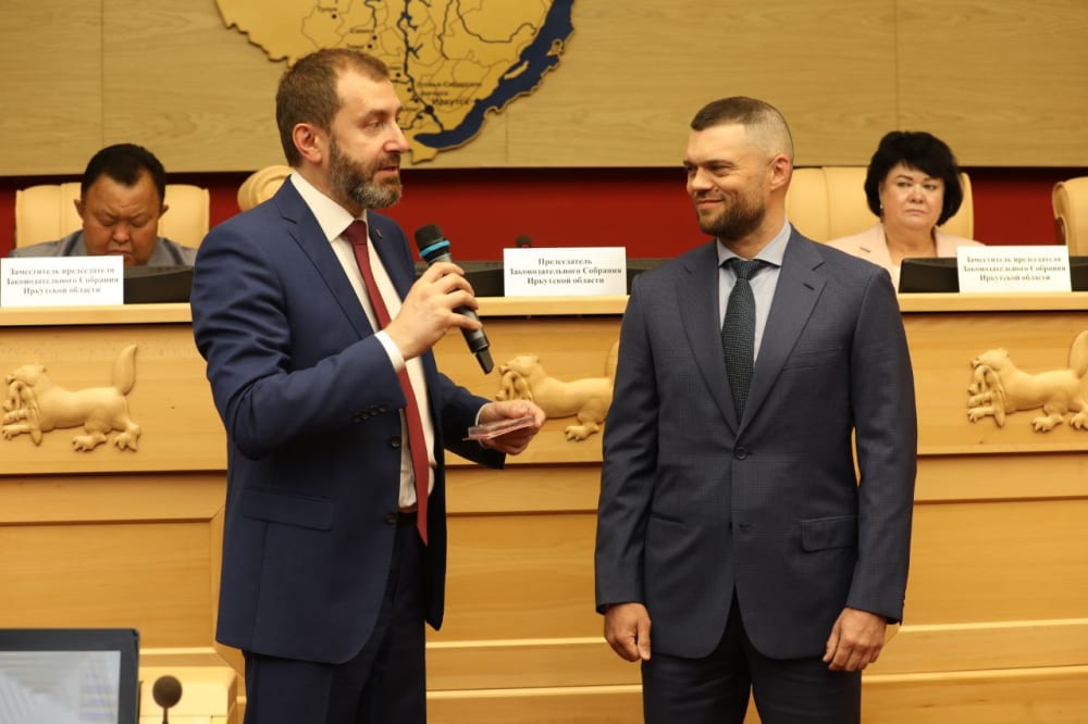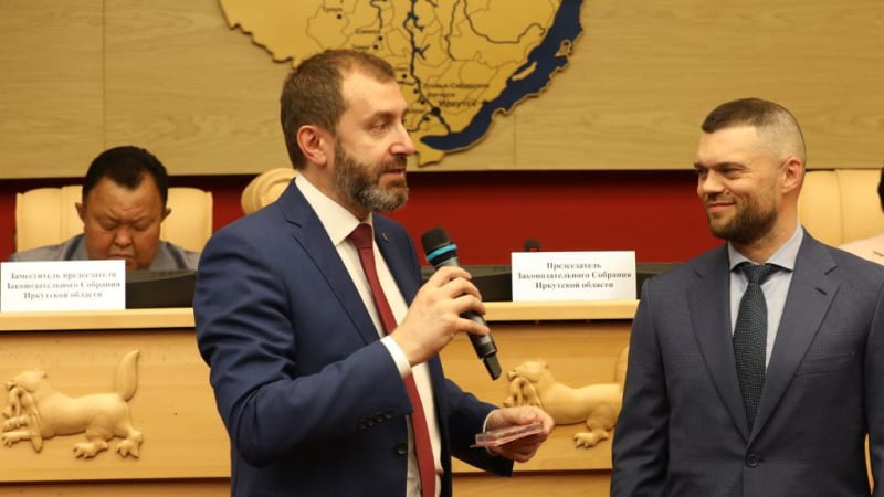 Спикер Законодательного Собрания Иркутской области Александр Ведерников вручил памятную медаль за участие в специальной военной операции предпринимателю из Иркутска Вадиму Логунову. Награждение состоялось сегодня в рамках 70-ой сессии областного парламента.