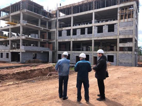 Парламентарию сообщили, что в настоящее время на стройке задействованы 74 человека. Четыре бригады каменщиков укладывают газоблоки на четырех этажах здания, одна бригада ведет бетонные работы на крыше.