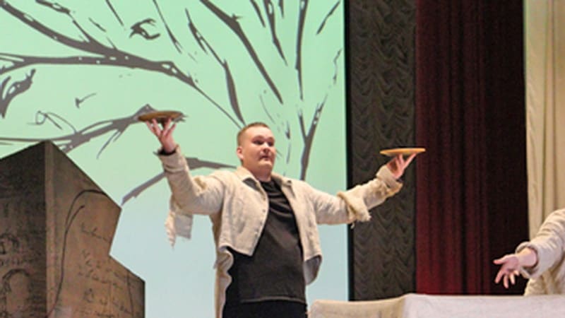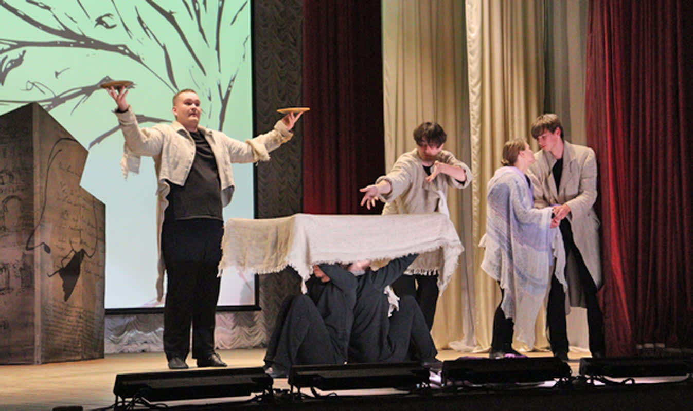 Прекрасное впечатление оставила инсценировка пушкинской повести «Барышня-крестьянка» режиссёра Лиры Шеломенцевой в исполнении её питомцев из народного молодёжного театра «SmileЛик», динамичная, озорная, музыкальная, где-то даже цирковая и вместе с тем очень целомудренная. Молодые ребята из Чуны уверенно и точно присвоили себе выпуклые характеры водевильной истории, отразив и лиризм, и кураж, и вольную иронию хрестоматийного текста. Они играючи управлялись с остроумными передвижными декорациями – большими багетными рамами в разных неожиданных метаморфозах, легко и непринуждённо водили хороводы, играли в ручеёк, стройно пели, манипулировали прялками, крашеными ложками, комично пришпоривали деревянных коней, устраивали весёлый шурум-бурум на сцене и в зале – словом, отрывались со всем юношеским азартом и видимым удовольствием, заражая публику воодушевлением и вулканической энергией. Невозможно было и заподозрить, что эта весёлая гурьба только что прибыла с другого фестиваля – с «Сибирской рампы» на Ольхоне, где завоевала заслуженный Гран-при.