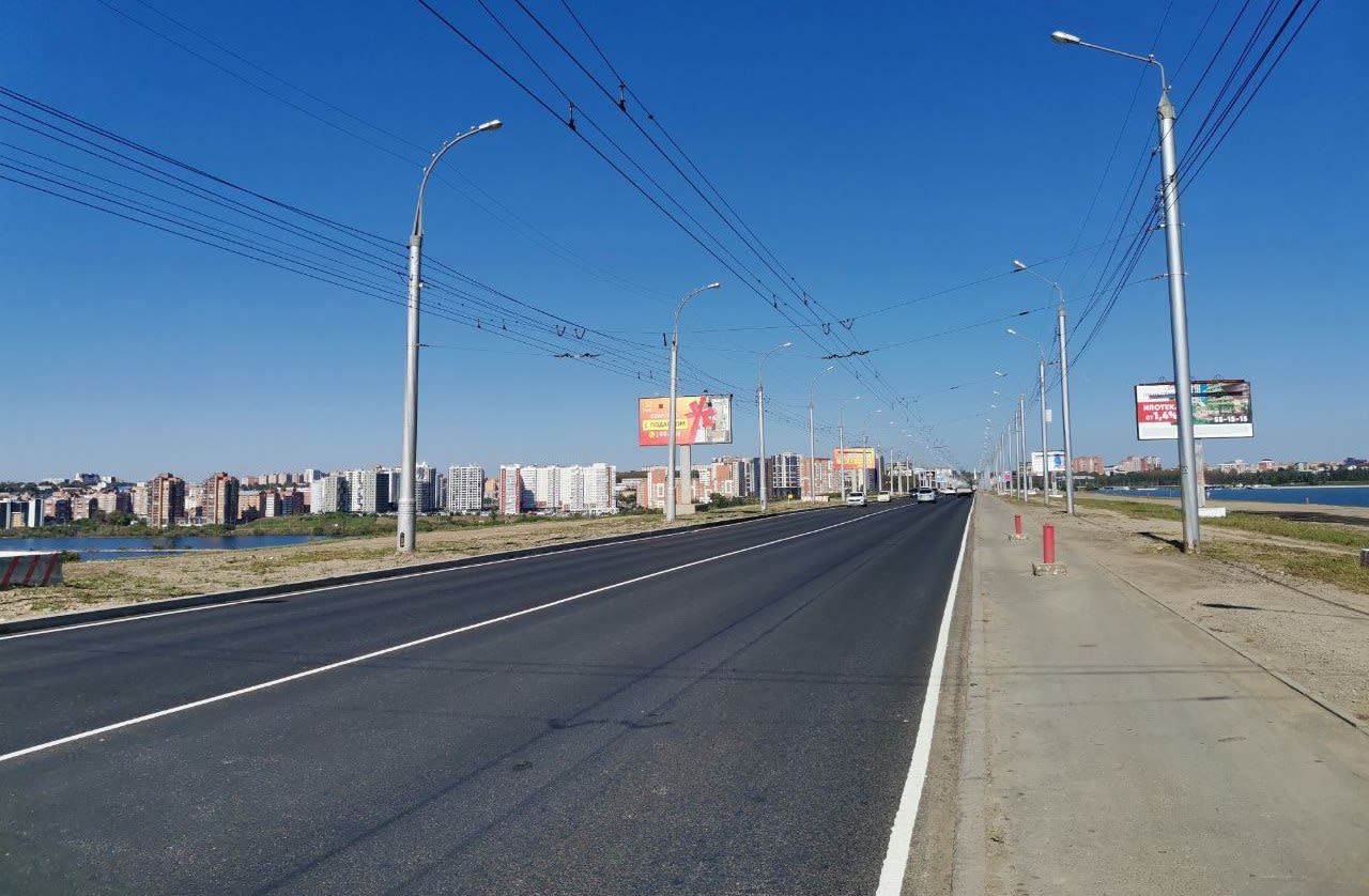 В этом году заменили 29 тысяч квадратных метров асфальта и 1500 метров бордюрного камня. Подрядчик отремонтировал 2,7 тысячи квадратных метров пешеходного тротуара, обновил дорожную разметку.