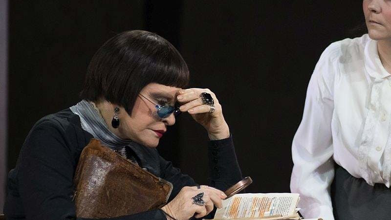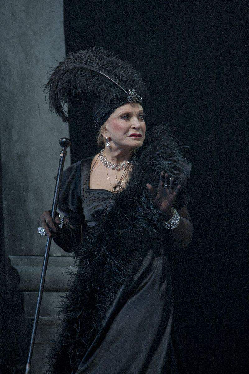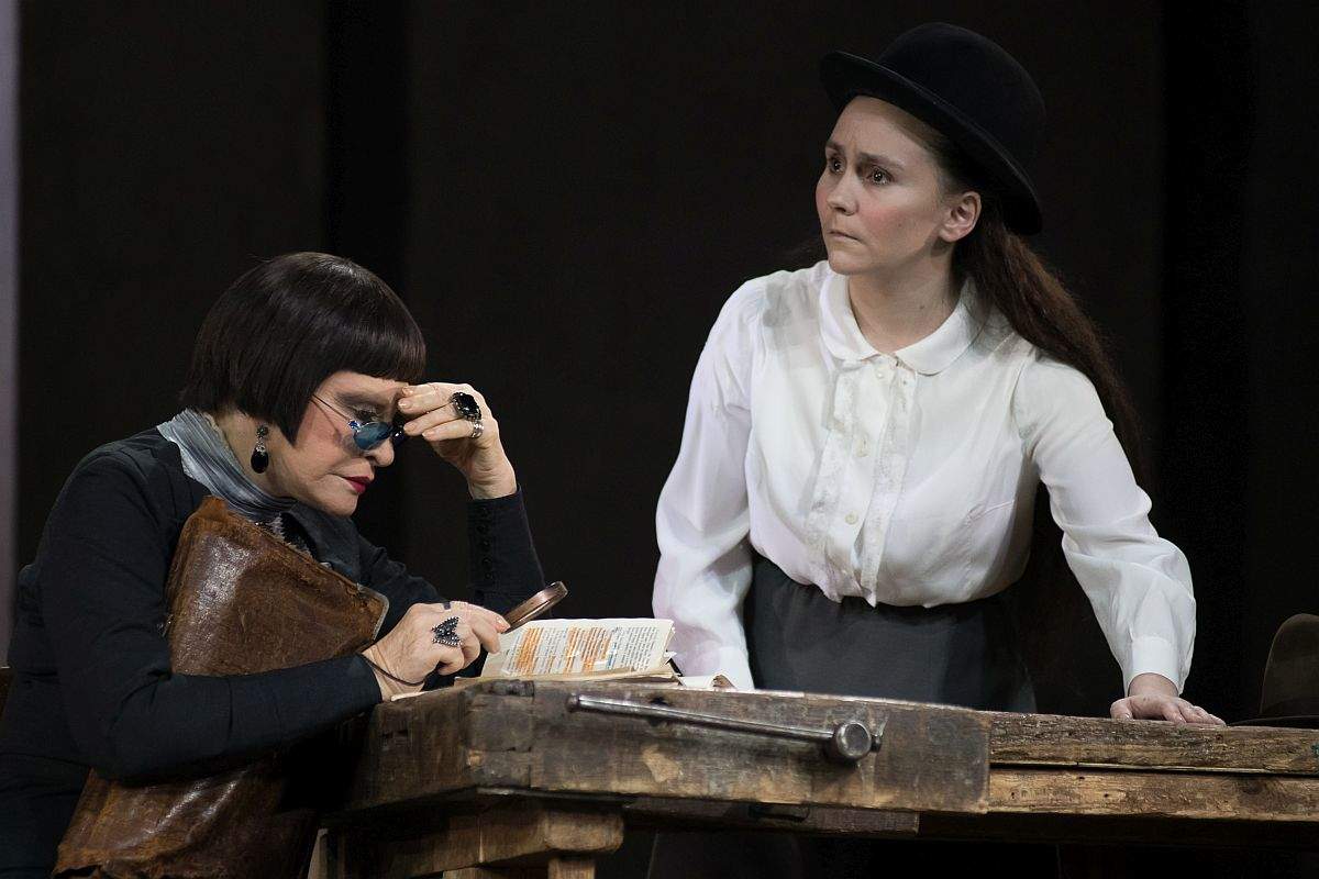 Ярчайшей в этом актёрском созвездии высоко проплыла легенда и прима вахтанговской сцены Людмила Максакова. Она пришла в театр в 1961-м, когда попасть было «труднее, чем сегодня на Марс». И верна ему поныне, уже больше шести десятилетий. Не стала живой сакральной декорацией, полна сил, играет сложные, знаковые роли. Нам посчастливилось увидеть в её воплощении Марию Васильевну, экзальтированную тёщу Серебрякова из «Дяди Вани». И совершенно невообразимый мультиперсонаж из «Евгения Онегина» – Танцмейстера, Няню, Харона в женском обличии, Повелительницу Небытия, Дух Зазеркалья холодной российской действительности. Она явилась на каблучках, в траурной балетной пачке зловещей Одиллии, куталась в монашеский плат Чернавки, гордо несла искрящийся льдистыми крошками чёрный плюмаж. Повелительно дирижировала «магической» тростью, гибкими колдовскими руками вызывала живые видения и трансовые аффекты, легко взлетала в балетных поддержках с молодыми партнёрами. Медитативно роняла красивые императивы на филигранном французском языке, посылая в зал и ввысь, под колосники, в заоблачную горизонталь свой упругий и чистый повелительный голос. Она царила и пленяла, подстрекала и развенчивала, мучила и губила. И гибла сама в последней, финальной сцене. Аплодисментами публика щедро благодарила великую актрису.