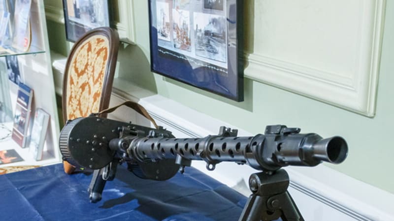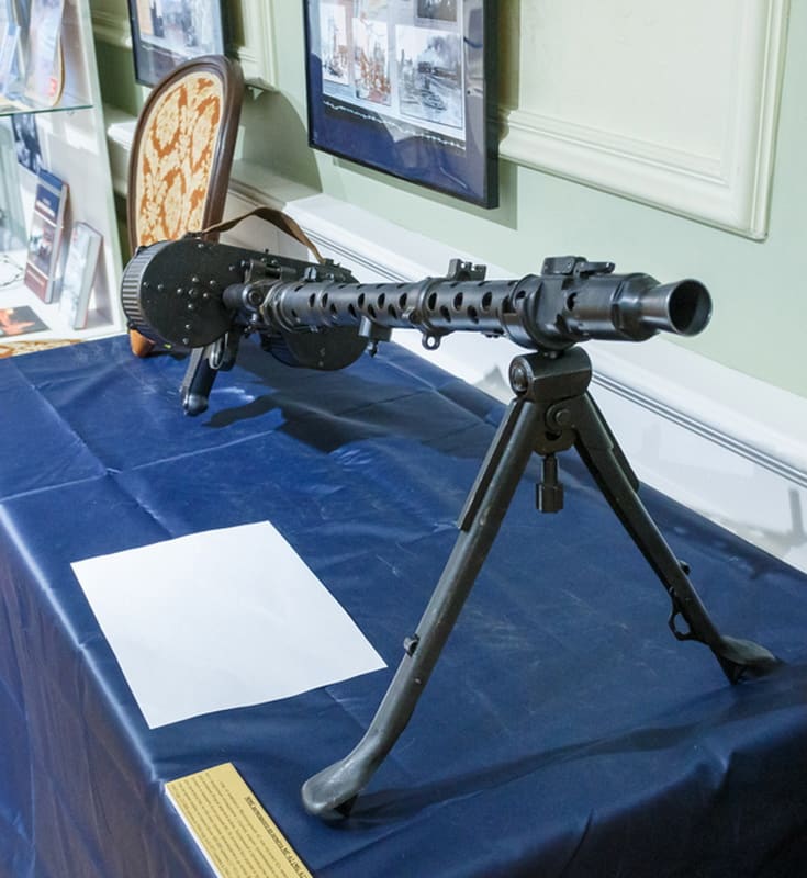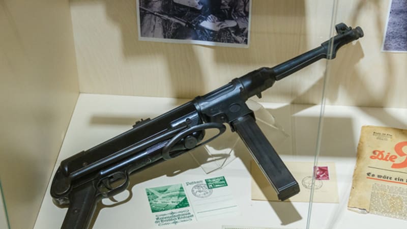 На выставке представлены образцы огнестрельного и холодного оружия, которое находилось на вооружении наших войск в период Великой Отечественной. Часть из них предоставлена коллекционером Юрием Юдиным, а помощь в создании выставки оказывал его брат Сергей Юдин. Можно увидеть макет автоматической винтовки Токарева, которая была на вооружении белорусских партизан, а также самозарядный пистолет «Маузер», которым вооружались командиры и комиссары партизанских отрядов. Всё оружие, представленное на выставке, – макеты. За исключением винтовки Мосина и автомата ППШ. Тут можно прочитать копию клятвы партизана, посмотреть, как выглядела бутылка с зажигательной смесью, и узнать, какими были инструкции по применению этого оружия. Ещё в одной витрине – немецкое оружие Великой Отечественной, в том числе макет пистолета-пулемёта MP38, или «Шмайсер», а также германские открытки, рейхсмарки.