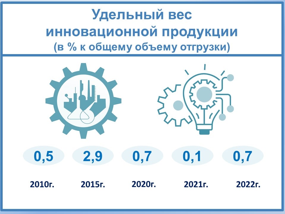 Число инновационно активных предприятий постепенно растёт, однако всё ещё невелико – 6,9%. Чуть больше активности в этом направлении демонстрируют обрабатывающие производства, разработчики компьютерных программ и работающие на научном поприще. Предприятия муниципальной и иностранной собственности по тяге к инновациям заметно уступают федеральным.