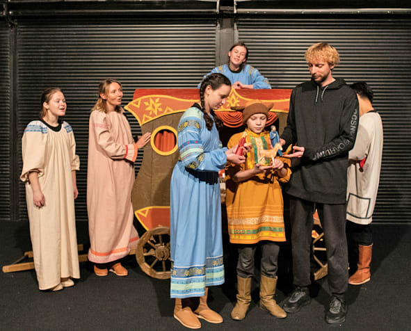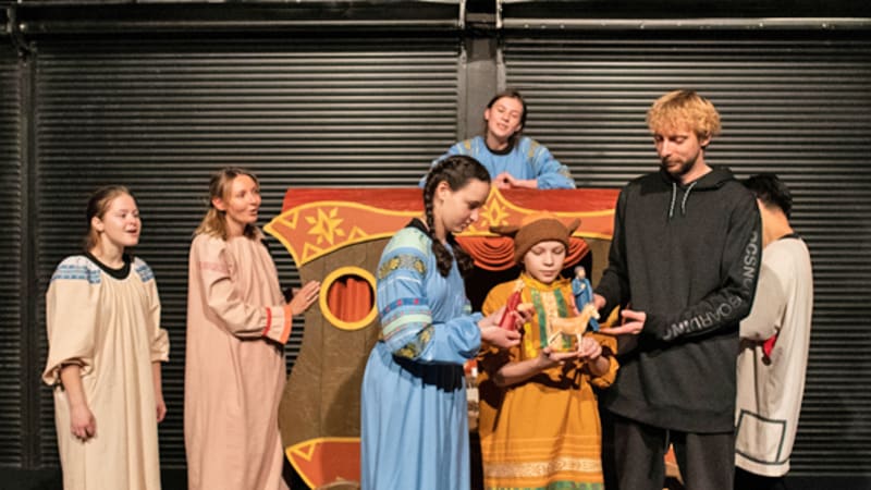Если на первой постановке бурные реакции малышей вырываются спонтанно, то второе представление намеренно провоцирует маленьких гостей включаться в происходящее, участвовать в действии, активно выражать свои чувства и расходовать энергию. С хозяевами сценической площадки зрителям предстоит общаться, играть, весело взаимодействовать. Это совершенно естественно, ведь перед ними не профессиональные лицедеи, а воспитанники театральной студии DRAMA, которая третий год подрастает в стенах Иркутского академического. Репертуарный лист любительского коллектива насчитывает уже семь оригинальных постановок и в канун Нового года пополнился импровизированным вертепным зрелищем вперемешку со скоморошьим гульбищем.