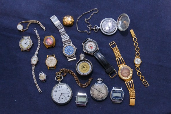Однако основа коллекции – это советские часовые раритеты. Сейчас их отбирают в фондах, готовят к экспонированию. Мы побывали в фондах музея, посмотрели на эту работу – как часы протирают, настраивают, придают «парадный» вид. В отдельных коробках – целая россыпь маленьких наручных часов.