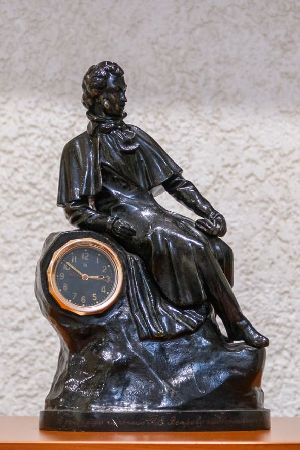 Около двух десятков лет назад передала в музей коллекцию часов, иркутянка Вера Мамонтовна Евдокимова, сотрудник Института систем энергетики СО РАН. В коллекции – около 40 хронометров. Среди них оказался уникальный экземпляр. Настольные часы с изображением пионера, трубящего в горн. Эти часы-будильник выпускались очень короткое время – только один квартал 1958 года на заводе «Слава». «Пионеры» выпускались как юбилейные часы, к 35-летию Всесоюзной пионерской организации имени В.И. Ленина. На 11 камнях, первого класса точности. Есть в музее и необычные часы, имитирующие башню московского Кремля.