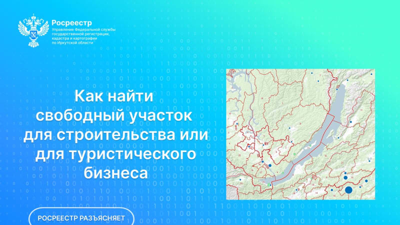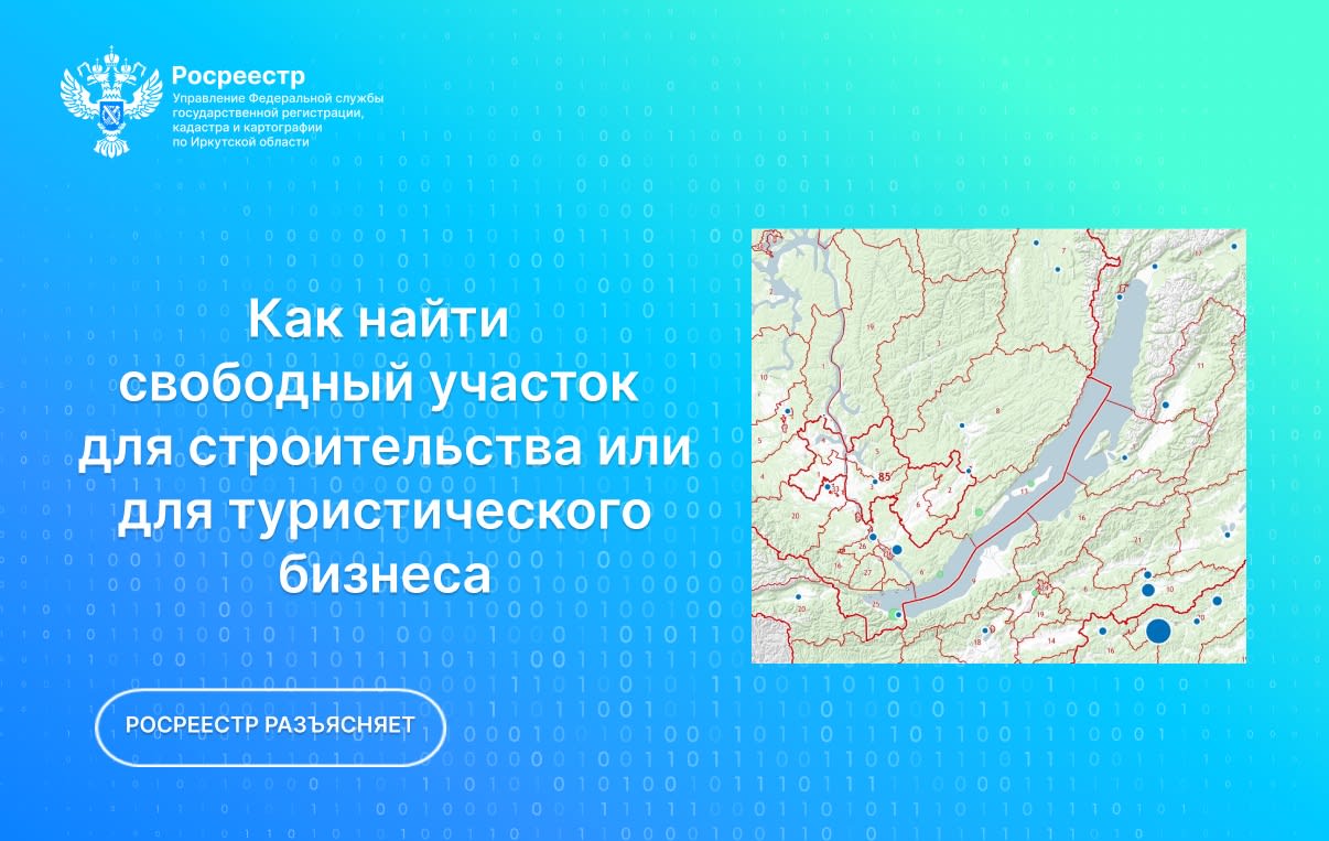В Иркутской области продолжают действовать социальные проекты «Земля для стройки» и «Земля для туризма». Проекты предоставляют всем желающим доступ к информации о свободных участках, которые могут быть использованы для жилищного строительства, а также для организации туристической деятельности.