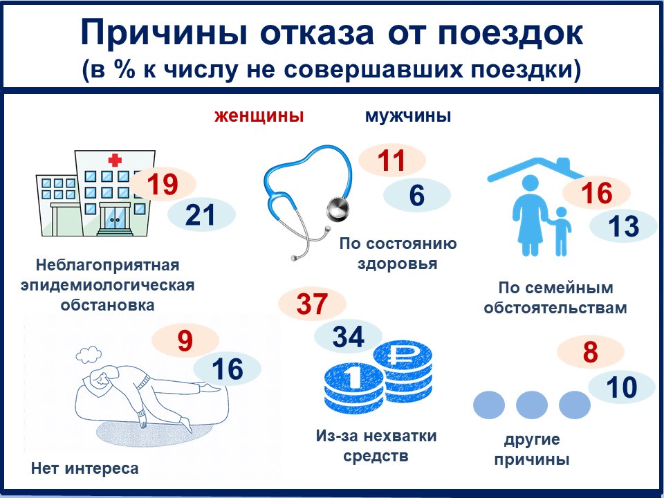 Около половины респонденток полагают, что с рождением ребёнка лишатся возможности полноценно отдыхать. Это негативно скажется также на здоровье, профессиональном росте, общении с друзьями. Мужчины во многом согласны с таким мнением, только почти не боятся за свою карьеру и опасений за здоровье у них значительно меньше.