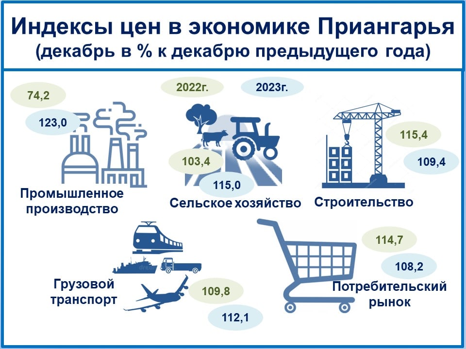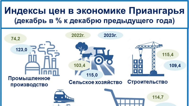 В минувшем году в промышленном производстве словно навёрстывалось былое «упущение»: если годом ранее средний уровень цен снизился на 26%, то в декабре 2023 года по отношению к декабрю 2022-го зафиксирован рост на 23%. В основе таких скачков ценовая ситуация на добывающих предприятиях, во многом обусловленная конъюнктурой мировых рынков. Подобная динамика, только менее выраженная, проявилась и в обрабатывающих производствах. Это коснулось деревообработки, химического и металлургического производства, выпуска нефтепродуктов и электрического оборудования.
