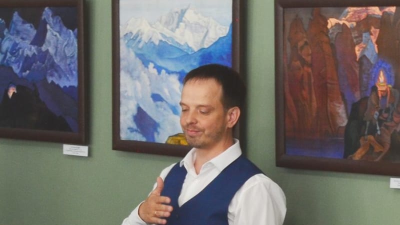 Заведующий кафедрой монументально-декоративной живописи и дизайна имени В. Смагина ИРНИТУ Дмитрий Дорохин провёл экскурсию по экспозиции выставки. Слушатели узнали о выдающихся духовных качествах, самоотверженности и патриотизме семьи наших соотечественников, которые завещали всё своё наследие русскому народу. «Нынче исполнилось четверть века наших странствий. Каждый из нас… в своей области накопил немало знаний и опыта. Но для кого же мы все трудились? Неужели для чужих? Конечно, для своего, для русского народа мы перевидали и радости, и трудности, и опасности. Много, где нам удалось внести истинное понимание русских исканий и достижений. Не на миг мы не отклонялись от русских путей. Именно русские могут идти по нашим азийским тропам». Так писал Николай Рерих в статье «Четверть века» 7 марта 1942 года. За свою жизнь он создал более семи тысяч картин, которые разбросаны по всему миру, но самая большая их коллекция находится в России.