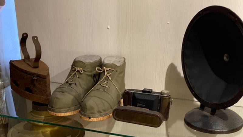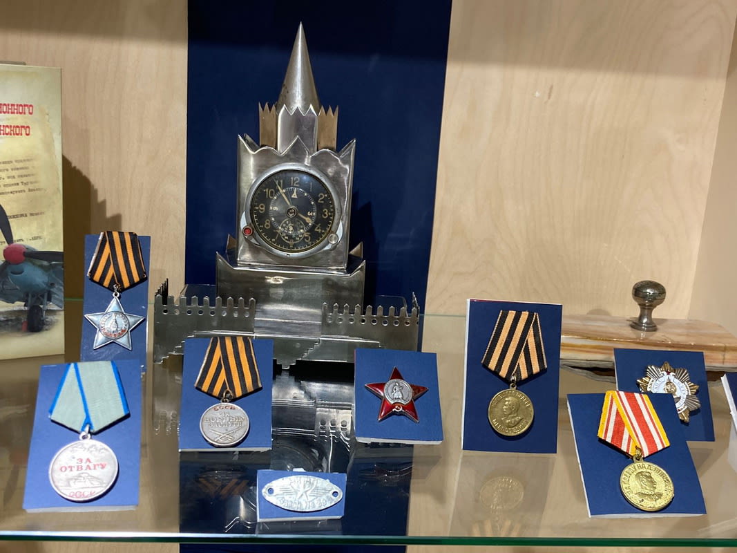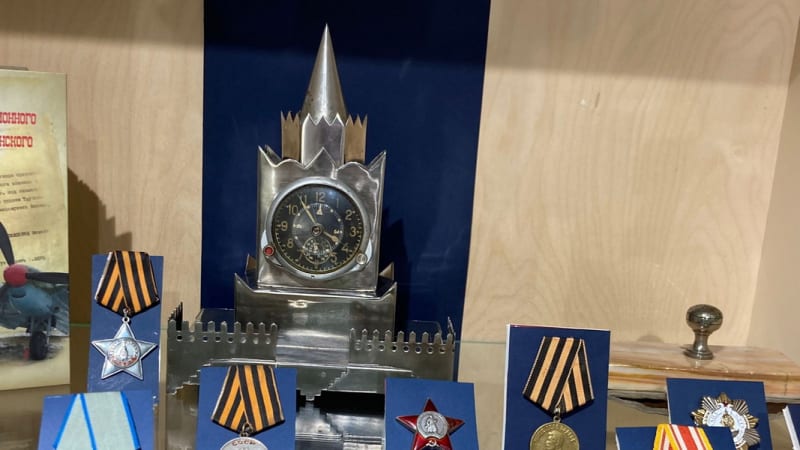 «Это правда, они все были такого возраста, что паспорта были не положены. Эти ребята стояли стояли за станками в войну на заводе Куйбышева, на авиазаводе, – говорит Сергей Дубровин. – Многие оставались ночевать прямо в цехах, поскольку так легче было успеть к утренней раздаче хлеба, а может, и получить тарелку горячего супа или каши вместе с ночной сменой. Но при всем недоедании, тяжёлой жизни – злобы у людей не было». На выставке есть и гражданские вещи, которые выпускал авиазавод в годы войны. Например, детские коньки, столовые приборы, дверные замки. Все это было создано из остатков металла при изготовлении самолётов. В 1944 году авиазавод освоил выпуск бомбардировщиков Ер-2. В музее хранятся уникальные часы в виде башни Кремля, сами часы сняты с бомбардировщика, а остальные металлические части сделаны из запчастей самолёта. Эти часы когда-то подарили музею дети передовика производства, которого наградили часами после войны.