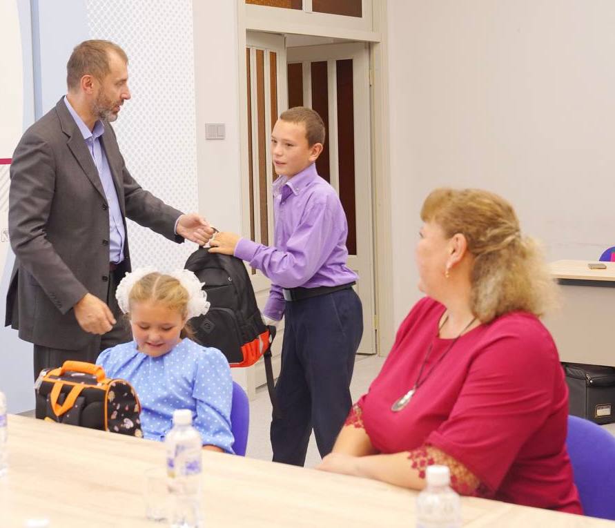 Жительница села Рысево Черемховского района Татьяна воспитывает пятерых детей, из них трое – школьники 7, 9 и 12 лет. Александр Ведерников отметил, что подготовка сразу троих ребят к началу занятий весьма затратна для родителей. «Первое сентября, День знаний – один из самых замечательных праздников для детей и родителей, ведь впереди пора новых впечатлений, новых знаний, встреч с друзьями и новых знакомств. К этому дню нужно обязательно готовиться заранее, поэтому сегодня вместе с Сергеем Владимировичем, мэром Черемховского района, вручаем вашим детям все необходимое для начала занятий», — сказал спикер парламента. Он подарил Артему, Кате и Егору ранцы с полным набором канцелярии.