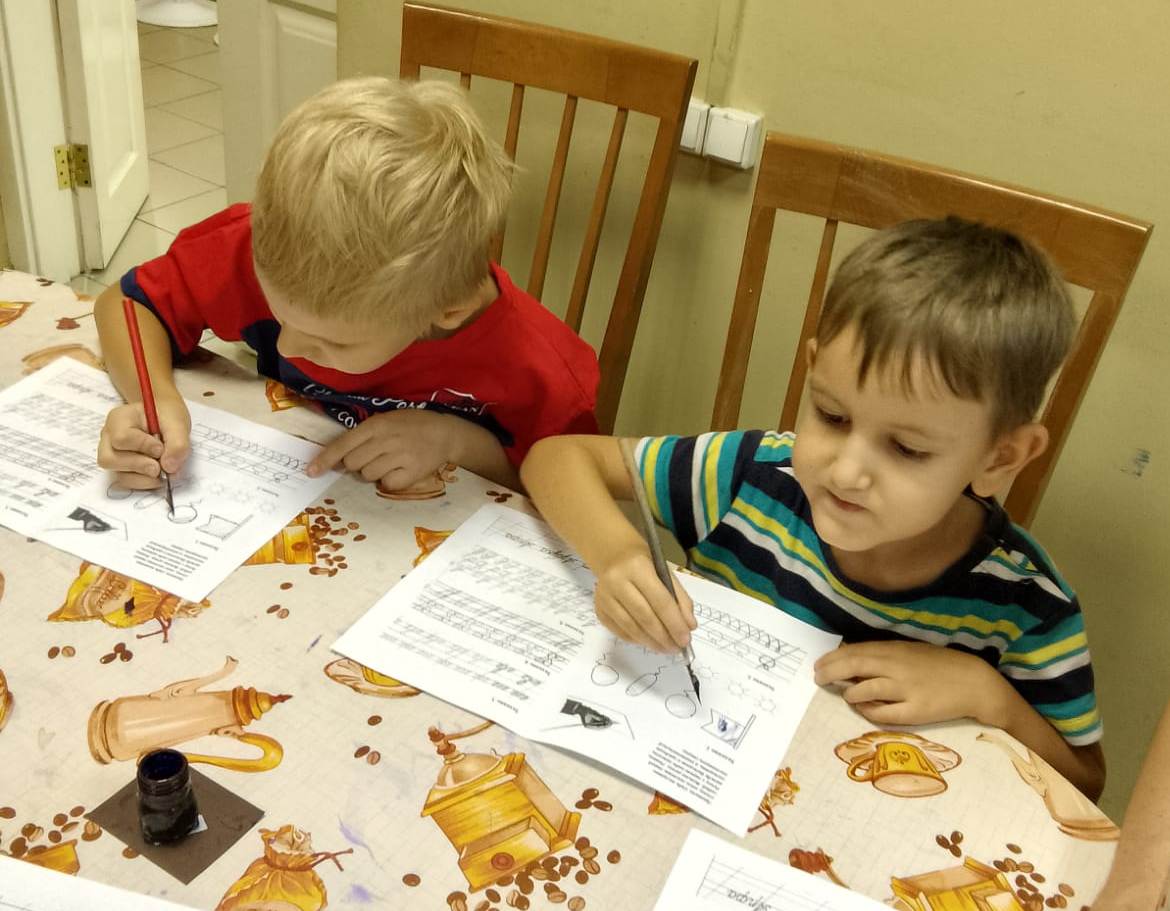 Следующим этапом мастер-класса был урок чистописания, который оказался интересным, и, в тоже время, нелёгким, как для ребят, так и для их родителей. На уроке чистописания «Мои первые прописи» ребята узнали об истории создания пера для письма, историю чернил, учились писать пёрышком в тетрадях для чистописания. Не отставали и родители. Они помогали освоить технику написания пером своим детям. По окончанию урока всем были поставлены оценки и розданы на память тетради по чистописанию с собственным творчеством. Затем участников экскурсии пригласили поиграть на территории музея в старинные уличные игры, в которые играли дети того времени.