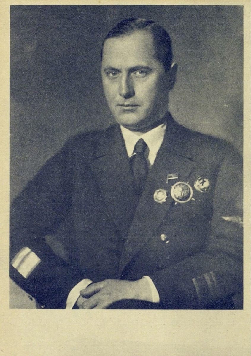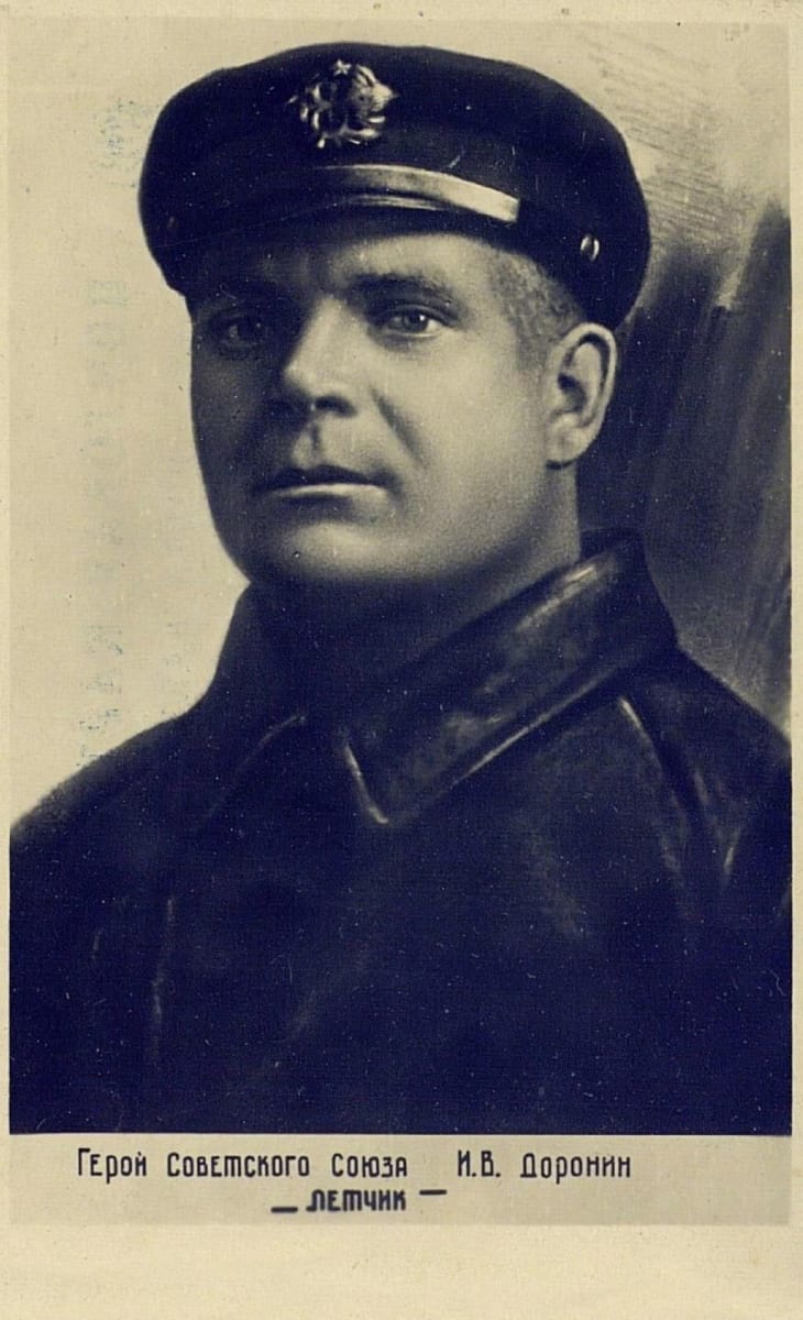 Лётчики Восточно-Сибирского краевого гражданского воздухофлота (г. Иркутск), члены «семёрки» первых в стране Героев Советского Союза, за участие в спасении экипажа парохода «Челюскин», Иван Доронин и Маврикий Слепнёв.