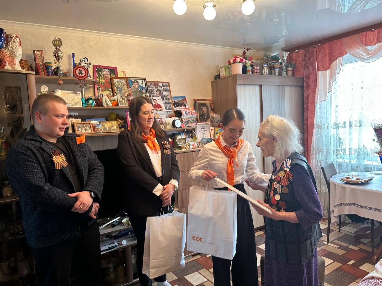 Традиционно в Нефтеюганске, Новом Уренгое и Томске сотрудники филиалов АО «ССК» навестили ветеранов войны и тружеников тыла, вручили подарки и поздравили с наступающим праздником. Самое главное для старшего поколения – внимание.