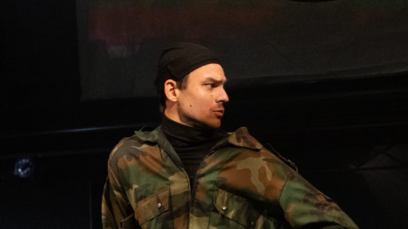 Питерский молодой режиссёр Георгий Шилов построил зарисовку к одноимённому спектаклю в перформативной модели, с элементами мюзикла. Рассказ об артисте, который добровольно пошёл «за ленточку» и после ранения с новым пониманием реальности возвращается в профессию, сроится на контрастах. Между жизнью и вымыслом, натурой и творчеством, между суровой правдой фактов и спасительной сказкой. Постановщик дополнил авторский текст документальными воспоминаниями актёров Мариинки, работавших в блокадном Ленинграде в годы Великой Отечественной. Трагическое испытание войной для человека мирной и даже «праздничной» профессии становится опытом постижения правды в искусстве.
