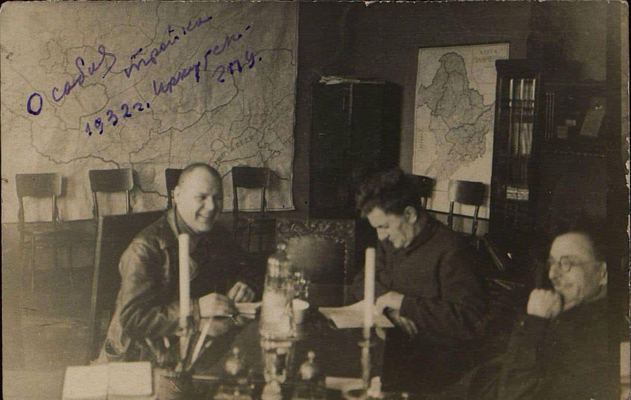 Справа — Председатель тройки, полпред ОГПУ по Восточно-Сибирскому краю Ян Петрович Зирнис. Слева — первый секретарь Восточно-Сибирского краевого комитета ВКП(б) Федор Григорьевич Леонов. По центру — прокурор Восточно-Сибирского края Иван Андреевич Крастин.