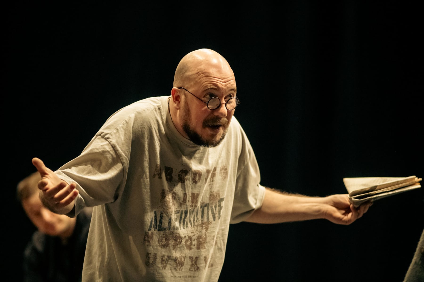 — У нас большая сложная декорация, мобильный конструктор. С системой поднимающихся и опускающихся падуг, лестниц, пролётов, арок, ворот. Петербургское дно, с читаемыми приметами эпохи Достоевского. Множество локаций обслуживает многоголосую природу романа: разные сюжетные линии сходятся одновременно, звучат и развиваются полифонично. Крепче всего связывает историю с настоящим моментом музыкальное оформление. Я решил, что это будет русский рок. Много наслушивал альбомов: «Пикник», «Агата Кристи», другие группы восьмидесятых и девяностых. Сам для себя сделал неожиданное, даже, признаюсь, немного пугающее открытие: многие песни почти буквально иллюстрируют перипетии «Преступления и наказания», уверен, что неосознанно. Зритель услышит это в спектакле. Хотя к иллюстративности я как раз не стремился. Мне важнее показать, насколько всё, переживаемое героями Достоевского, актуально и для нас.